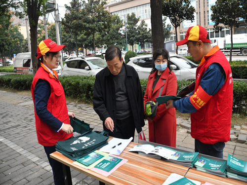 10月18日,临潼供电公司城区供电所共产党员服务队“红马甲”在桃园路城区供电所门前开展“爱电日”宣传活动。