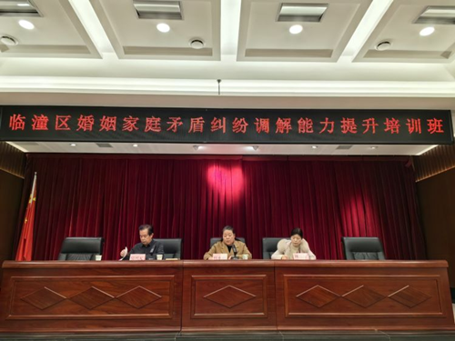 12月13日,临潼区妇联、区司法局共同举办临潼区婚姻家庭矛盾纠纷调解能力提升培训班。区妇联副主席杜永利、区司法局法治促进科科长、区婚调委各婚调室主任、各街道妇联主席、司法所所长共60余人参会。