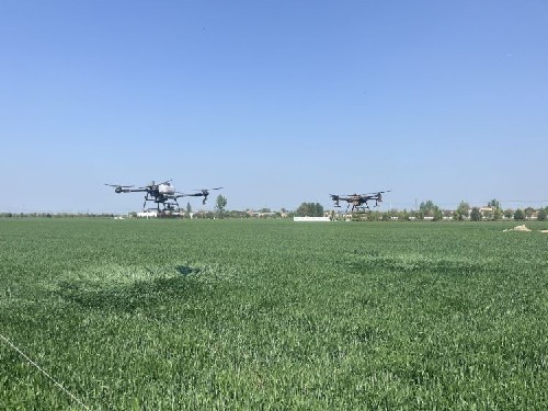 会议现场,西安今越农业科技发展有限公司进行表态发言,农技人员对“一喷三防”施药机械进行讲解,并进行现场展示,现场共出动4架植保无人机,示范作业面积300余亩。随后对全区小麦“一喷三防”防控工作进行安排部署。通报了当前苗情、病虫害发生情况,并对小麦中后期田间管理技术、“一喷三防”技术要点开展培训,区气象局通报近期气象趋势。