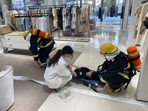 演练当天,王府井奥莱临潼小镇模拟了一起火灾事故场景。随着警报声响起,各部门员工迅速按照预定的疏散路线有序撤离到安全地带。消防人员迅速赶到现场,使用灭火器和消防水带进行灭火作业。同时,医疗救护小组也做好了准备,面对模拟的伤员,医疗救护小组成员展现了高超的专业技能和冷静的处理能力。他们迅速判断伤员的伤势,实施止血、包扎、固定等急救措施,并在最短时间内将伤员转移至安全区域。在整个过程中,小组成员始终保持沟通畅通,确保信息的准确传递。