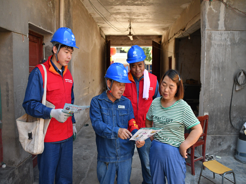 8月13日,临潼供电公司共产党员“红马甲”冒高温深入村组上门检查客户用电线路设备,为客户提供足不出户的“一站式”供电服务。