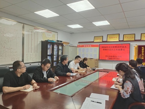 10月8日,区水务局城乡供水管理站组织召开2024年全区秋季农村供水保障大走访工作部署会,会上进行一系列部署安排,并抽调精兵强将成立工作专班,扎实落实秋季农村供水保障大走访工作任务。同时向各街办下达通知,要求各街道召开专题会议,讲述农村饮水安全标准、走访内容及工作要求;并要求各街道对各自辖区农村供水保障情况进行全面入户走访。