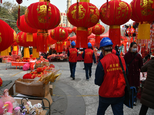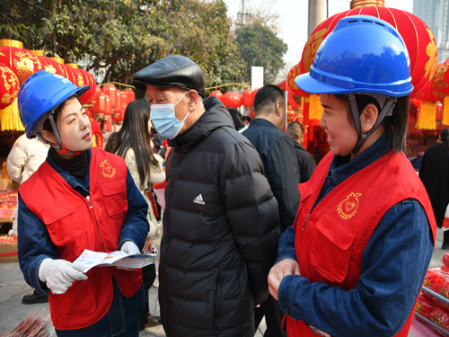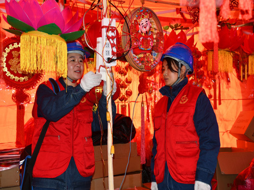 “元宵节”临近,灯笼市场的生意越来越红火。为确保全区居民度过一个平安祥和的元宵节,2月7日,临潼供电公司“石榴花”女子特色服务小队队员走进临潼城区人民路十字灯笼市场开展安全用电检查及宣传活动,做到优质服务“不打烊”。