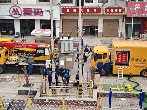 本次带电四类作业,带电班出动2台带电车、1台移动箱变车、1台柔性电缆升降车,共出动人员20余人。首次使用“不停电作业+负荷转移”四类综合作业法更换柱上变压器,作业类型包括带电短接引流线、带电接空载电缆线路与架空线路连接引线、负荷转移车更换变压器三类作业项目。带电作业班成员做好安全措施后,带电作业人员身着绝缘服,分别操控着2台绝缘斗臂车,有条不紊地进行旁路电缆安装、绝缘遮蔽、高低压线路带电接火……在高低压不停电的情况下由移动负荷转移车代替旧变压器保障正常供电,隔离出旧变压器,并进行变压器吊装更换工作。杆线下方,10余位工作人员相互协同配合,经过4个多小时的全力奋战,圆满完了此次工作任务,实现了四类不停电作业领域“零”的突破。