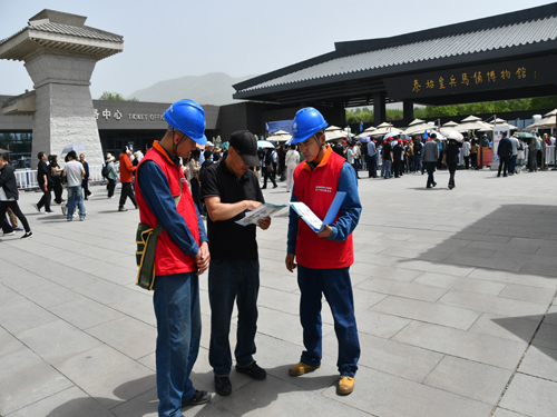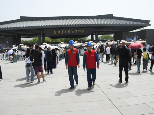 临潼供电公司加强对辖区党政机关、驻军部队、新闻媒体、铁路高速、信息通讯等重点保电客户和商场、医院、酒店、旅游景点等开展安全用电检查。积极宣传供电服务热线83301234,便于群众第一时间联系、咨询。在兵马俑景区,秦俑供电所对景区配电室及刀闸、开关、备用电源及相关设备进行了检查,消除隐患,提升景区供电可靠性和安全性。对景区周边的农家乐、宾馆、饭店、民宿等进行下延式安全用电进行检查,主动为居民讲解安全用电、节约用电、绿色用电等常识,提高安全用电意识。在华清宫景区,用电检查班对景区和《长恨歌》夜间演出用电设备进行测温,并对演出期间设备负荷进行检测,对舞台供电线路、灯管、表箱等用电情况进行地毯式检查,做到不留死角、不留隐患。在骊山索道,工作人员加强与景区负责人沟通,组织专业服务人员分别对重点客户用电设备和供电线路精心“把脉”,重点对高空索道等区域的用电设施进行深度“体检”,对客户自备应急电源做好安全性能测试。