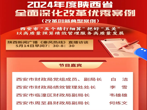 近日,临潼区财政局受邀参加由陕西省纪委监委与陕西广播电视台联合推出的《秦风热线》栏目,本期主题为“西安市以高质量预算绩效管理服务经济社会高质量发展的实践经验与成效案例”,临潼区财政局因其在预算绩效管理方面成绩突出,受邀作为典型案例代表区县随同市财政局参加。本次节目是按照省委深改委统一安排,对全省优秀改革创新典型案例进行分享和经验交流,以凝聚改革共识和信心,助力全省全面深化改革。