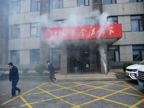 随后,公司安监人员在办公楼一楼通道点燃2枚烟雾弹,办公楼通道烟雾迅速弥漫开来,干部职工们从四楼捂着口鼻,弯着腰,井然有序,沿着疏散楼梯从办公楼的各个楼层迅速撤离至“安全地带”。同时,以演练的方式,使参加逃生演练的干部职工更加熟悉发生火灾事故时的疏散逃生技能和基本方法,增强了干部职工的消防安全防范意识和应对突发事件的正确处理能力。