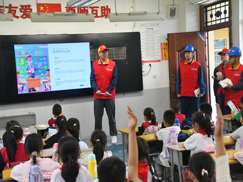 课堂上,志愿者们还与学生进行面对面交流,向他们传递安全用电常识,用通俗易懂的语言生动形象地讲解了孩子们在日常生活中容易遇到的用电安全隐患,警示孩子们要时时刻刻警惕可能发生触电事故的行为,让孩子们学会保护自己、远离意外伤害,从小养成安全用电、节约用电的习惯。期间,还为孩子们送上铅笔、本子各60余份爱心小礼物,发放“图说安全警钟日日鸣、用电常识记心中”等宣传图册60余份,鼓励孩子们争当安全用电宣传员,让安全用电知识深入到千家万户。