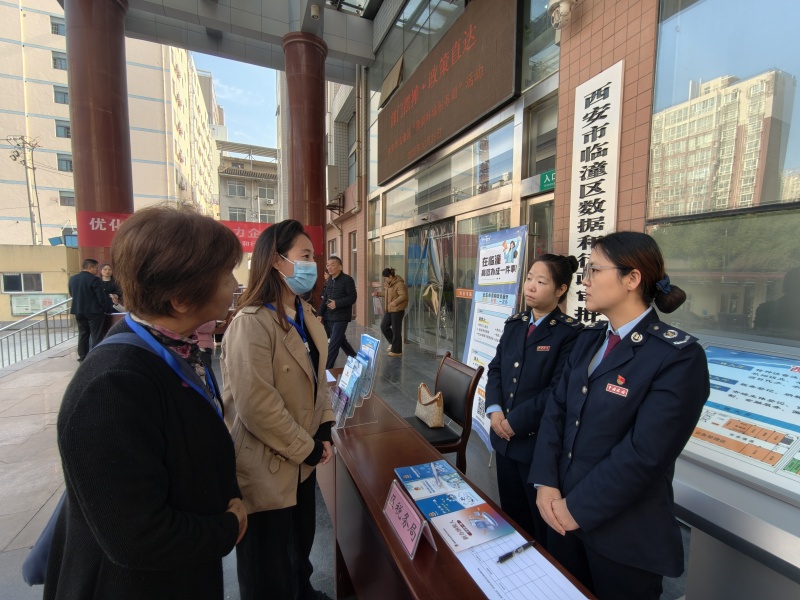 10月28日下午,临潼区政务服务中心院内气氛热烈,临潼区“部门摆摊·政策直达”活动火热进行,区数据和行政审批局、区市场监管局、区住建局、区城管执法局、资源规划分局、区人社局、区医保局、区税务局、公积金管理部等单位现场“出摊”,面对面解答企业群众在证照办理、社保医保、工程建设、涉税服务等方面的疑问,把政务服务送到企业群众身边。