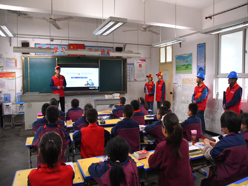 当天下午,公司团员青年与穆寨供电所“红马甲”一行带着互动道具、实用文具、学习书籍走进穆寨街办东岳中心小学,为孩子们带来了一节“安全用电进校园”主题班会,向他们讲解“安全用电 你我同行”“电的简单认识、电的应用及风险、生活中安全用电、雷电防范与危害、触电急救、安全用电顺口溜”等知识。同时,生动形象的讲述日常生活中“电从哪里来”,教育引导小朋友“湿手不要触摸电器、家里用电插头不要随便拔插、告诉大人不要在电杆上绑绳晾晒衣物”等用电小常识。通过现场讲解、互动讨论、答疑解惑,发放安全用电宣传画册等方式,让偏远山区留守的孩子们在愉快、轻松的心情中学习到电力应用和安全用电知识,拓宽知识面,拓宽视野,帮助孩子们提高自我保护意识,培养安全用电、节约用电的习惯。