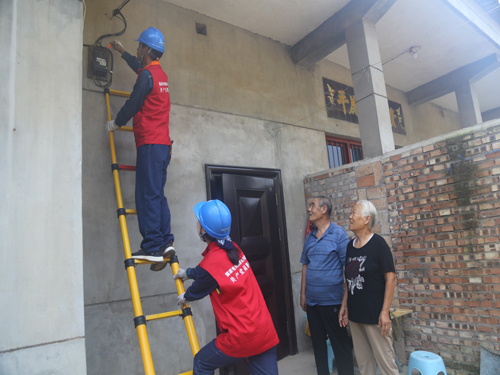 8月15日,临潼供电公司共产党员服务队深入新丰街办空巢老人家检查室内线路设备,排除用电隐患,确保特殊群体高温天气用电安全。