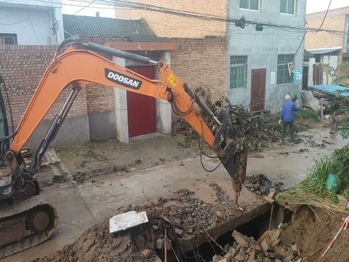 代王街道在各村主干道和巷道,党员干部带头,志愿者们分工协作,利用铁锹、扫帚、铲车等工具,对淤泥、积水进行全面清理。同时,针对部分因雨水冲刷造成的路面塌陷和破损,抢修人员及时调配砂石、水泥等材料,进行填补、加固,确保路面平整、安全。此外,各村还对排水沟进行了全面排查和疏通,防止再次降雨造成积水隐患。