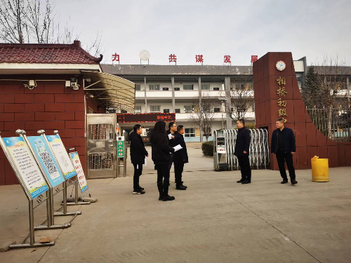 首先,检查组实地查看了学校的食堂、消防器材、校园环境等,相桥初中校长从食品安全、消防安全、校园暴力、校园贷等方面进行了汇报。
