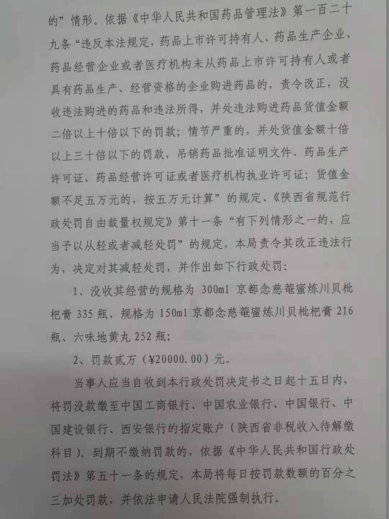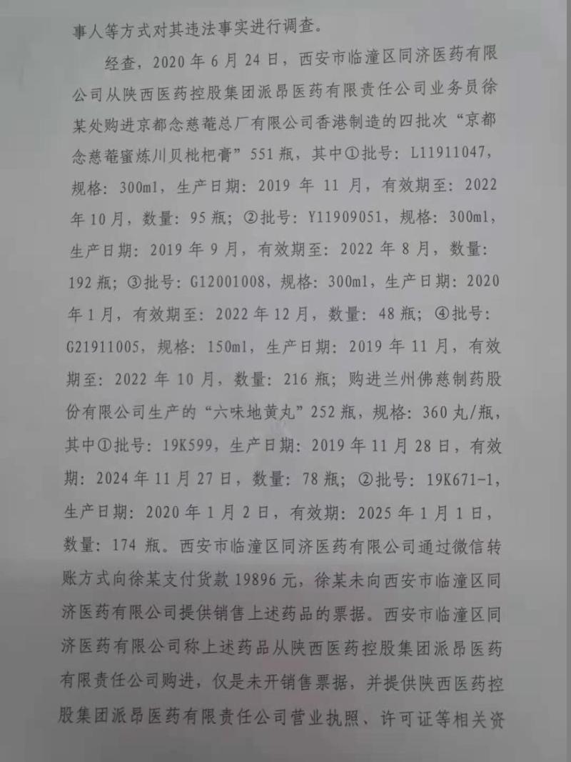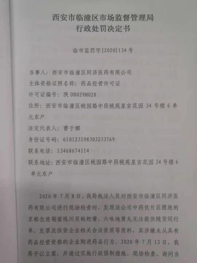 西安市临潼区同济医药有限公司非法渠道案行政处罚决定书