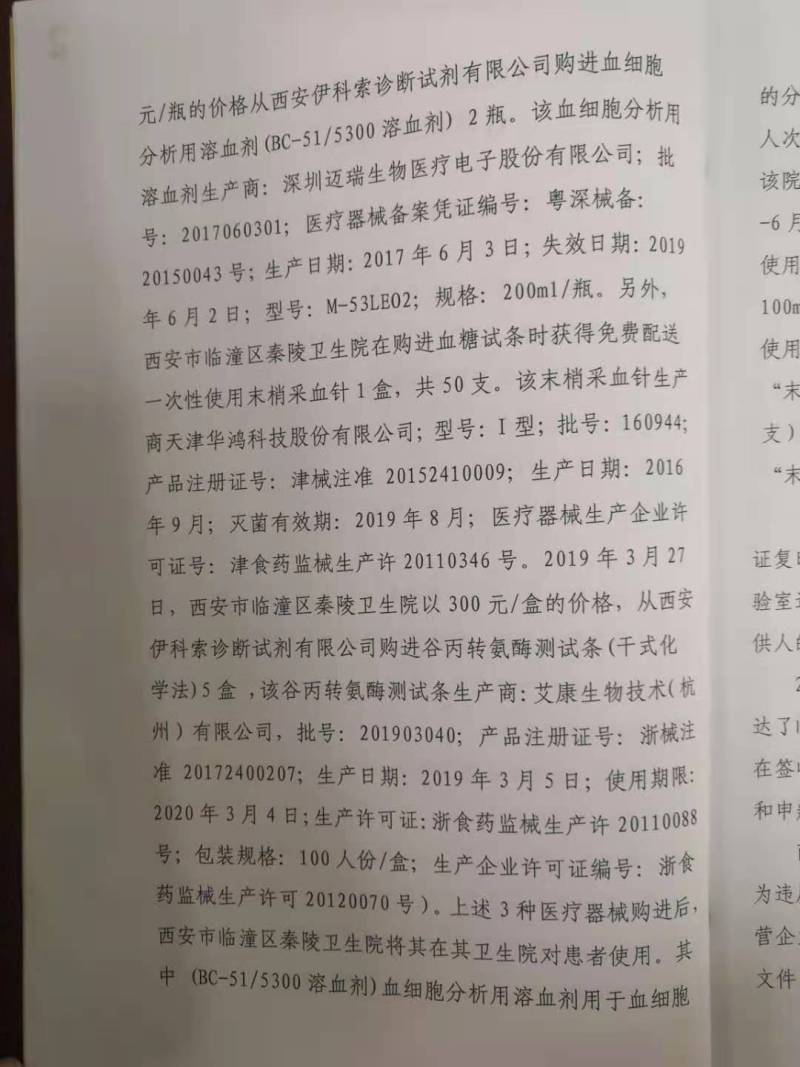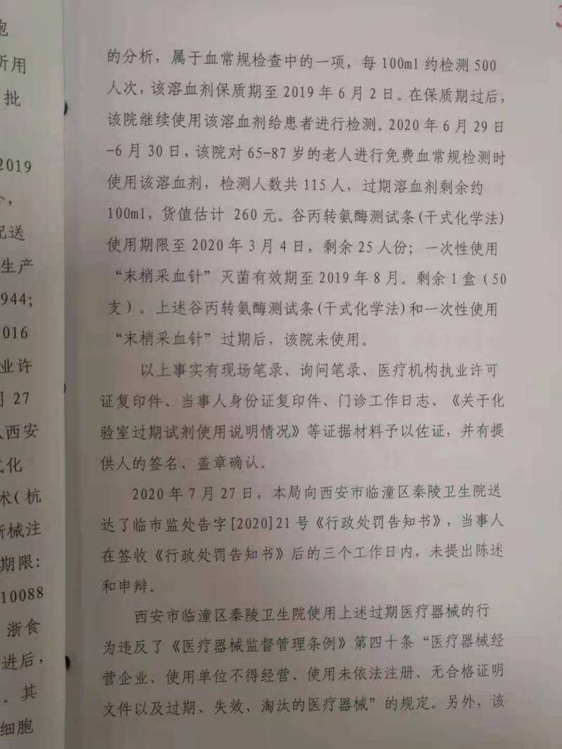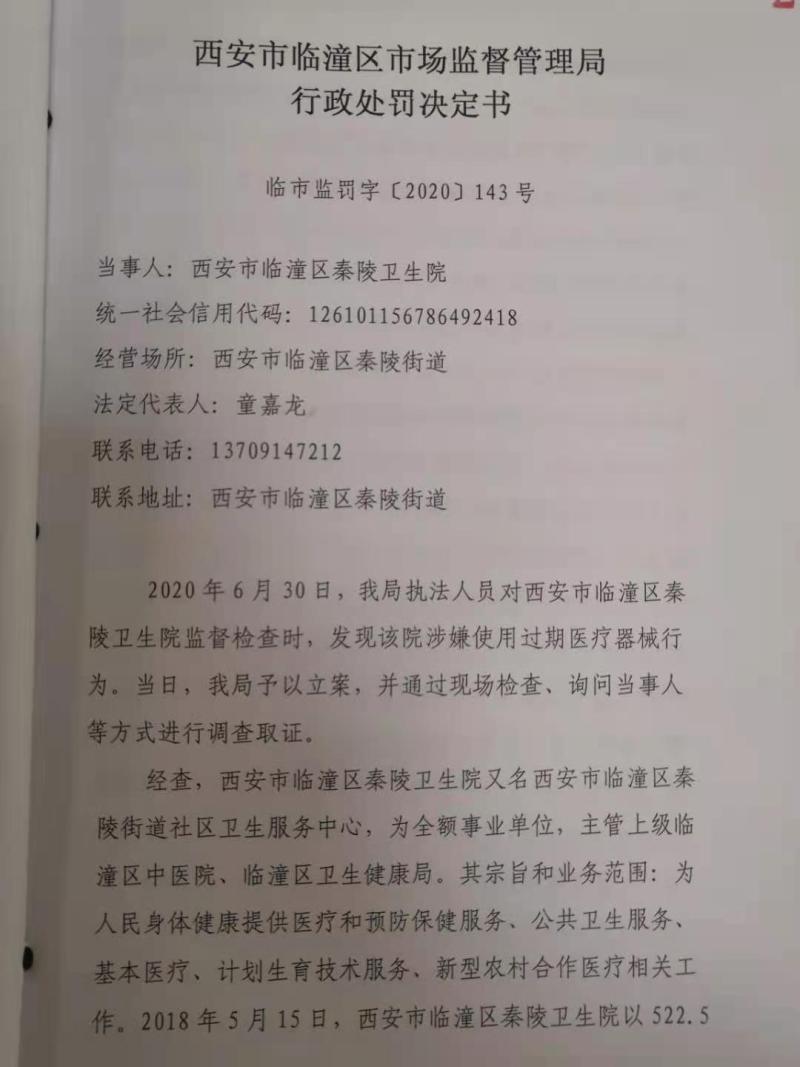 西安市临潼区秦陵卫生院使用过期医疗器械案行政处罚决定书