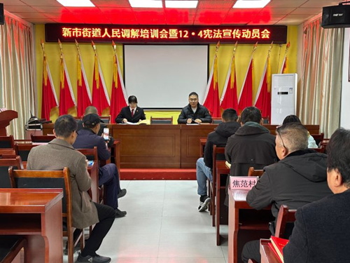 11月29日,新市街道组织召开辖区人民调解培训会暨2023年“宪法宣传周”动员会,提升村级人民调解队伍整体业务水平,安排部署“宪法宣传周”各项工作。新市街道各村(社区)调委会负责人参加培训。