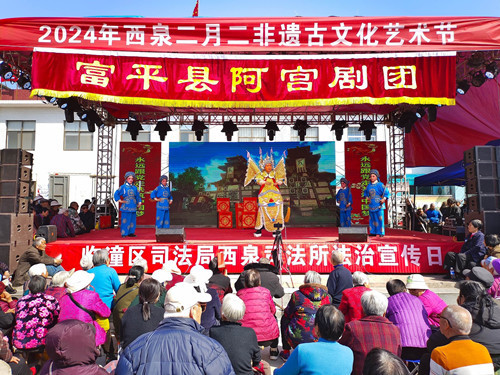 3月11日,西泉举办二月二非遗古文化艺术节,踩高跷、扭秧歌、唱大戏、社火表演精彩纷呈,观众人山人海。临潼区司法局西泉司法所将送法下乡与非遗文化节相结合,深入开展法治宣传活动,为群众送去法律知识,让普法春风扑面而来。