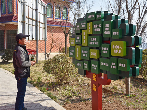 “秦岭保护法治文化街”由临潼区司法局和穆寨街道共同精心打造,建在东岳村主干道上,长约300米,结合穆寨街道“关中宋城”“秦岭古镇”特色,融入宋代文化与秦保主题法治元素,巧妙设立“秦岭四宝”主题法治宣传栏4块,灯杆旗宣传栏10块,法治雕塑2处,“宋”字展牌6块,将法治文化、法治思想用通俗易懂的语言展现出来,使群众能够出门见法治、散步学法治。