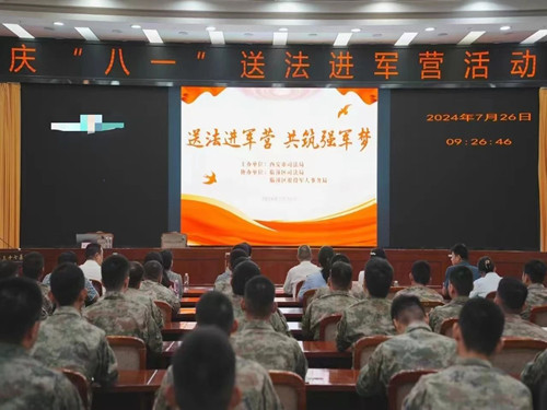 7月25日,西安市司法局,临潼区司法局、退役军人事务局共同走进驻临某部队,开展“送法进军营 共筑强军梦”主题活动。