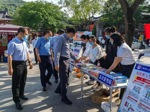 5月20日,临潼区委依法治区办、区司法局联合陕西华清宫文化旅游有限公司,开展2022年“民法典宣传月”暨“民法典进景区”主题日宣传活动。
