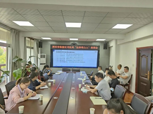 临潼区司法局第四协作区于8月3日在行者街道召开“法律明白人”培训专题会。骊山、斜口、西泉、行者等街道司法所工作人员及70余名“法律明白人”参加了此次培训。陕西骊剑律师事务所律师贾华华围绕习近平法治思想、《民法典》及《反有组织犯罪法》等内容,通过解读理论体系、剖析典型案例等方式为与会人员进行了全面讲解,进一步提升“法律明白人”专业知识储备和自身法治素养。