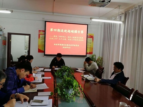 4月23日上午,区发改委举办第四期“追赶超越”擂台赛,本次擂台赛主题是“PPP项目、特色小镇建设及煤炭削减工作”,PPP项目管理中心、决咨委、节能监察监测中心、环资科分别进行了发言。