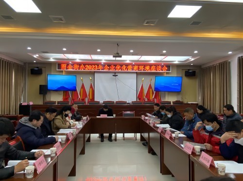 2月8日下午,为深入贯彻落实优化营商环境条例,雨金街办召开2023年企业优化营商环境座谈会,与辖区企业家代表面对面展开交流,谈心声、解难题、共谋发展良策,携手推动雨金营商环境持续优化,助力经济社会发展迈步新台阶。座谈会由街办分管副主任文宇同志主持,街办领导、各科长、辖区企业代表和相关科室参加活动。