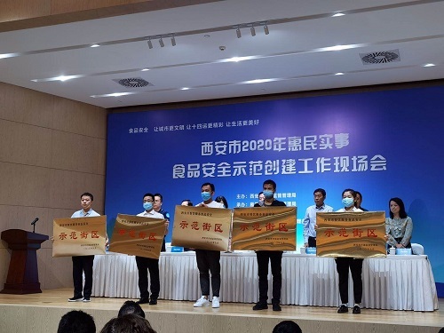 9月17日,西安市召开2020年惠民实事食品安全示范创建工作现场会,对首批示范创建街区、企业表彰授牌。