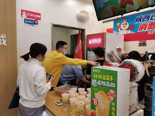 执法人员重点检查了辖区蜜雪冰城茶饮店的证照及公示、从业人员健康证明、食品原辅料采购贮存、进货查验、餐饮具清洗消毒保洁、食品加工制作流程、操作间环境卫生等情况。