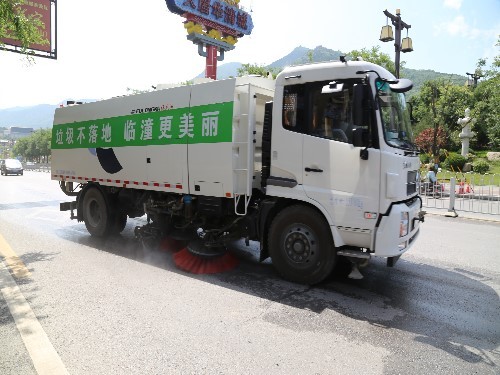 扫地车正在作业。加大专项资金投入,提高机械化清扫率。