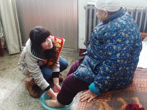 志愿者为社区孤寡老人服务
