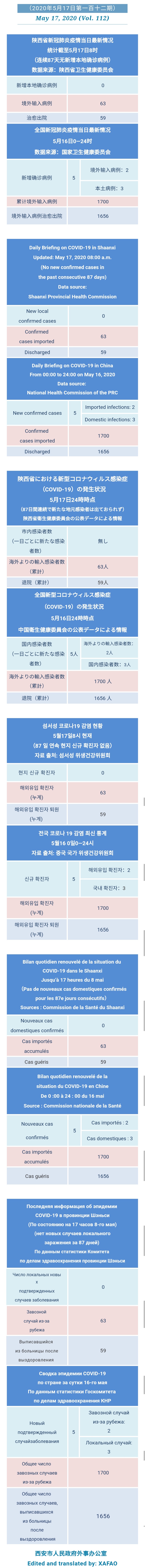 西安市外办向在西安的外国人通报每日疫情(第一百一十二期)