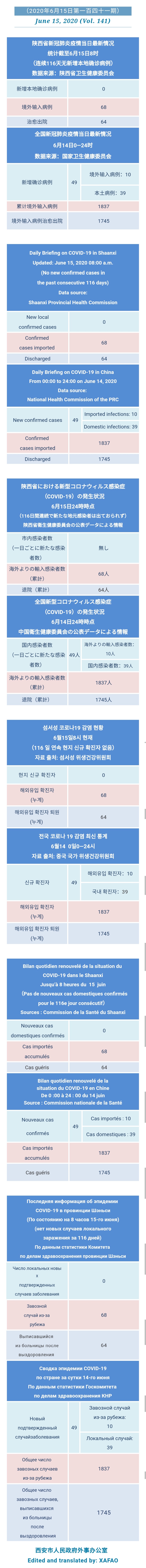 西安市外办向在西安的外国人通报每日疫情(第一百四十一期)