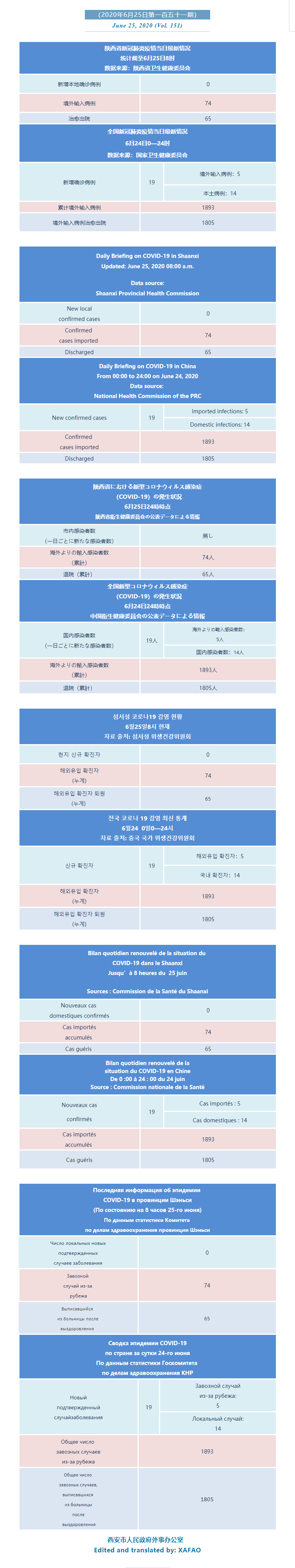 西安市外办向在西安的外国人通报每日疫情(第一百五十一期)