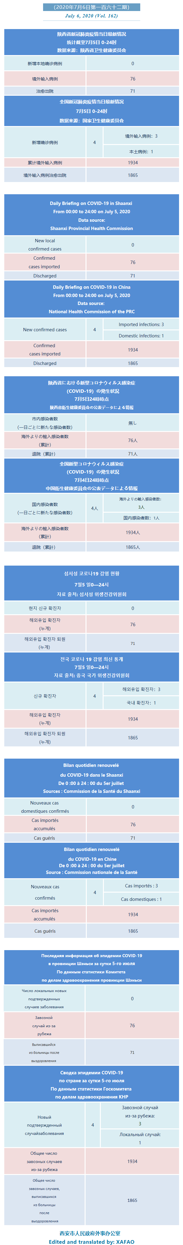 西安市外办向在西安的外国人通报每日疫情(第一百六十二期)