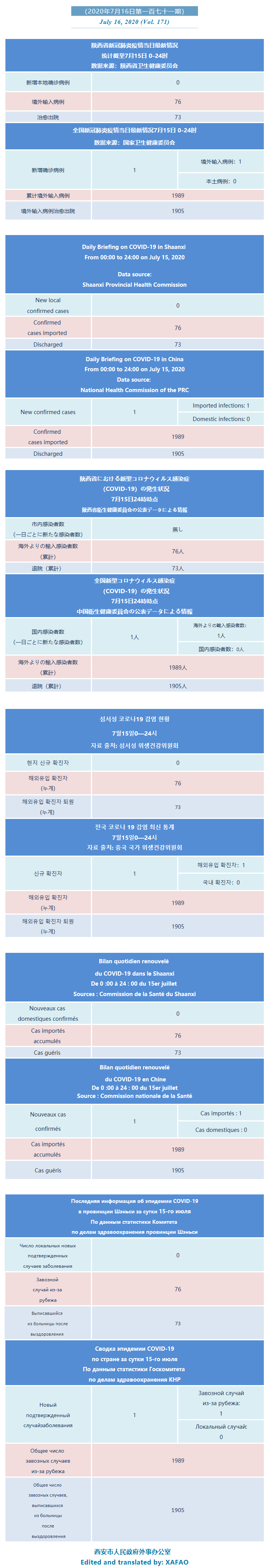 西安市外办向在西安的外国人通报每日疫情(第一百七十一期)