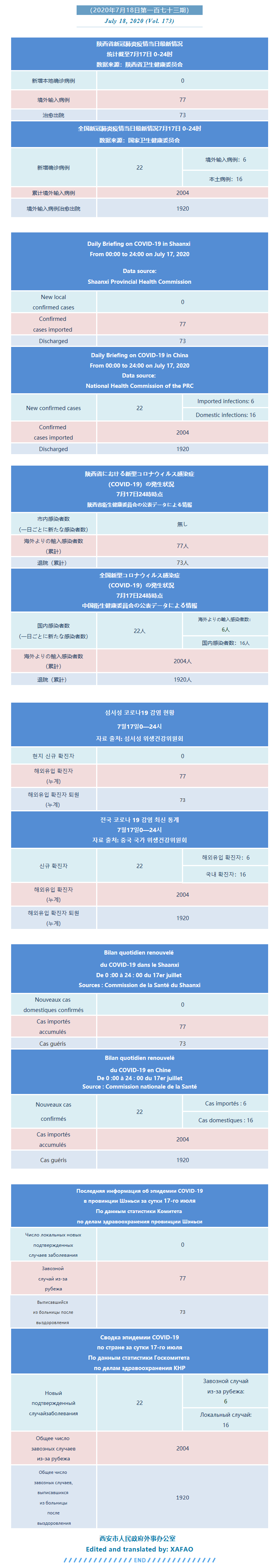 西安市外办向在西安的外国人通报每日疫情(第一百七十三期)