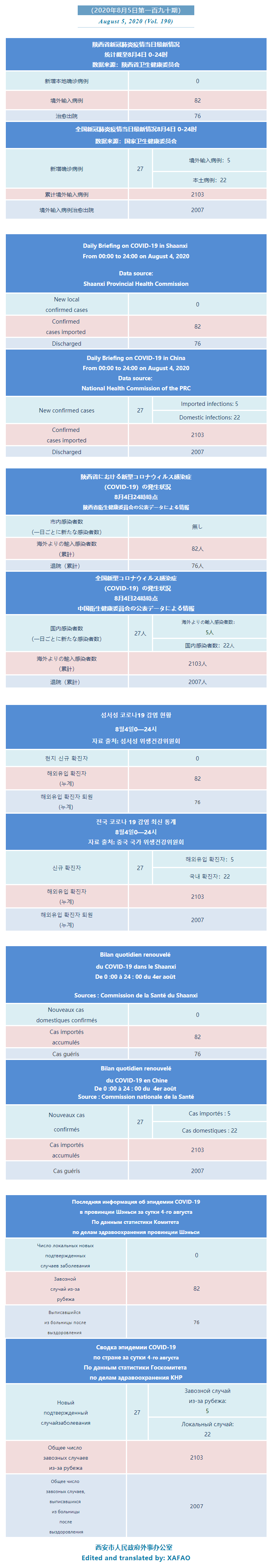 西安市外办向在西安的外国人通报每日疫情(第一百九十期)