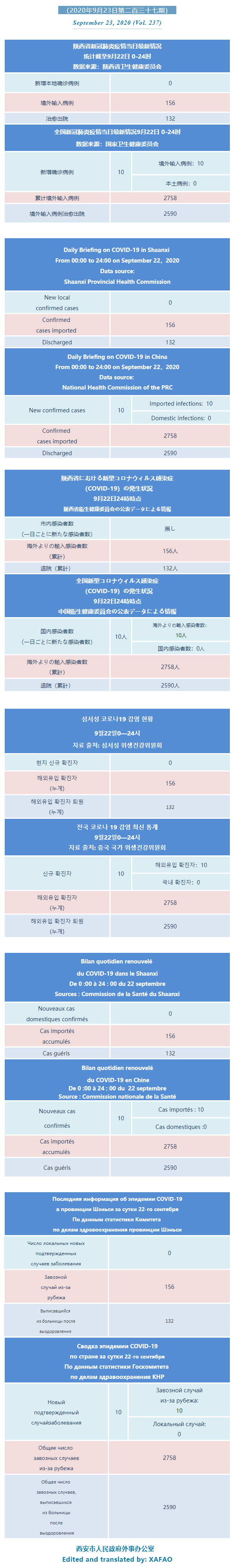 西安市外办向在西安的外国人通报每日疫情(第二百三十七期)