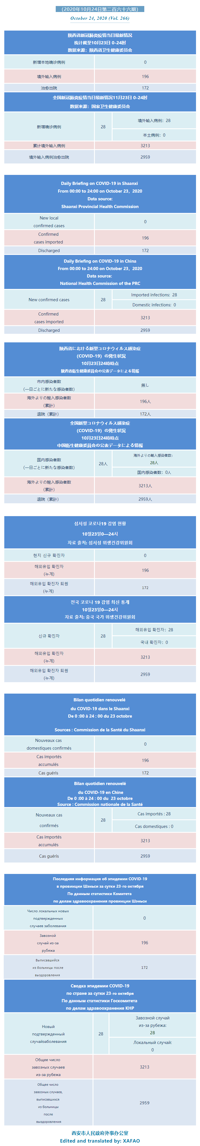 西安市外办向在西安的外国人通报每日疫情(第二百六十六期)