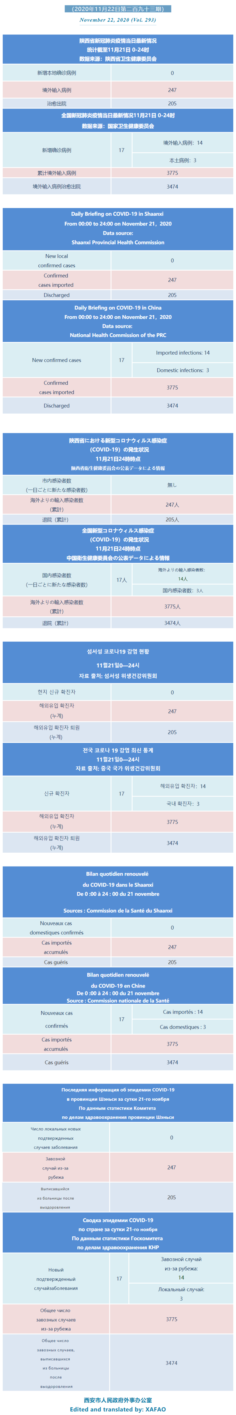 西安市外办向在西安的外国人通报每日疫情(第二百九十三期)