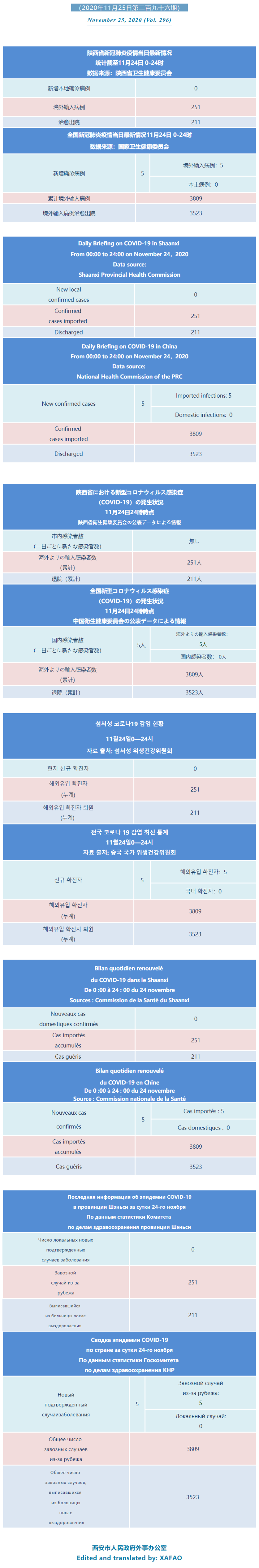 西安市外办向在西安的外国人通报每日疫情(第二百九十六期)