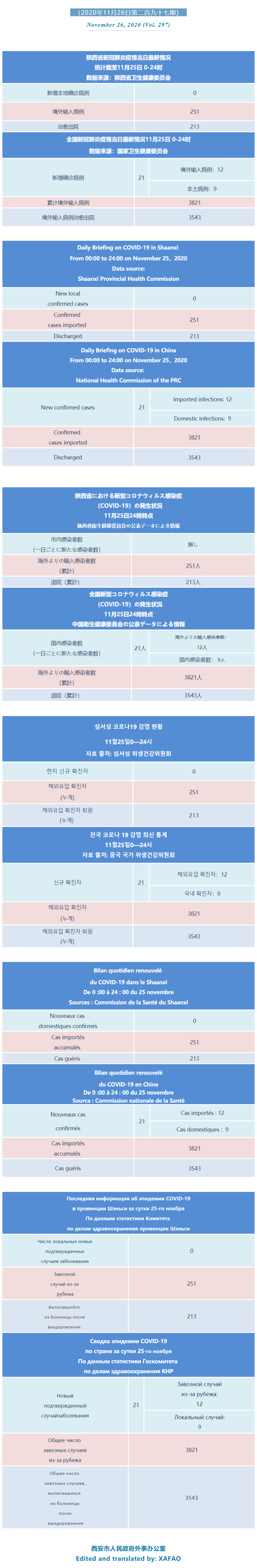 西安市外办向在西安的外国人通报每日疫情(第二百九十七期)