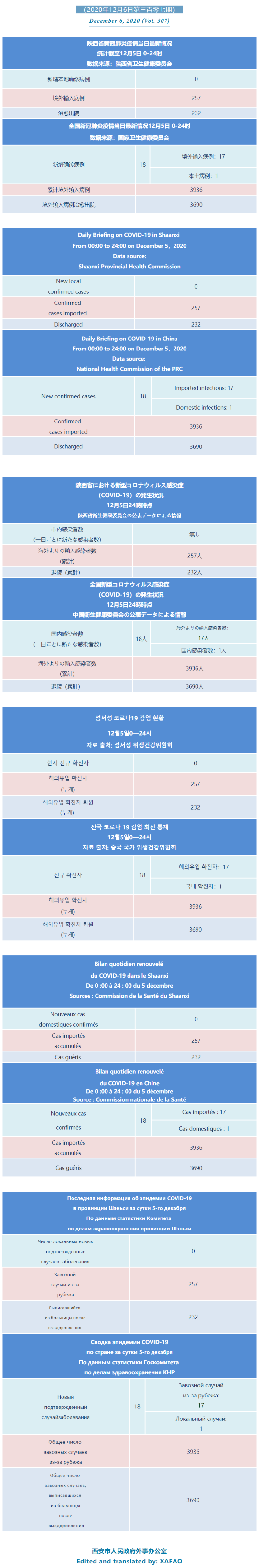 西安市外办向在西安的外国人通报每日疫情(第三百零七期)