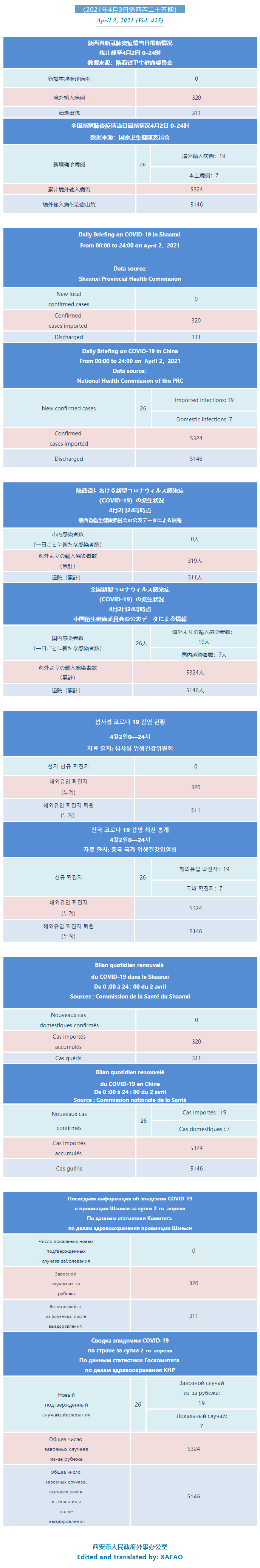 西安市外办向在西安的外国人通报每日疫情(第四百二十五期)