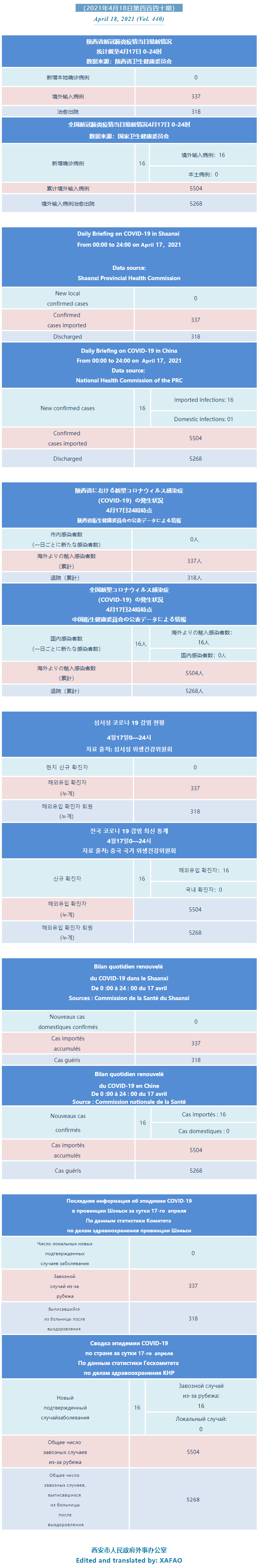 西安市外办向在西安的外国人通报每日疫情(第四百四十期)