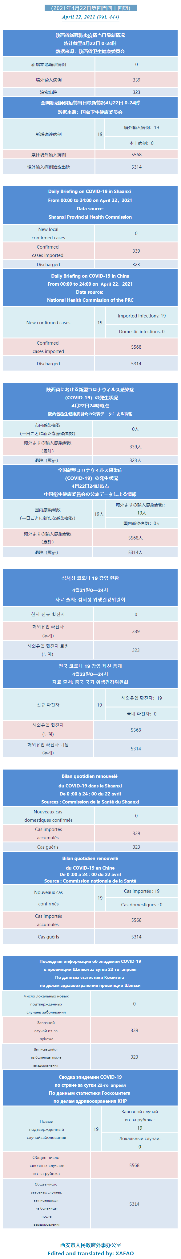 西安市外办向在西安的外国人通报每日疫情(第四百四十四期)