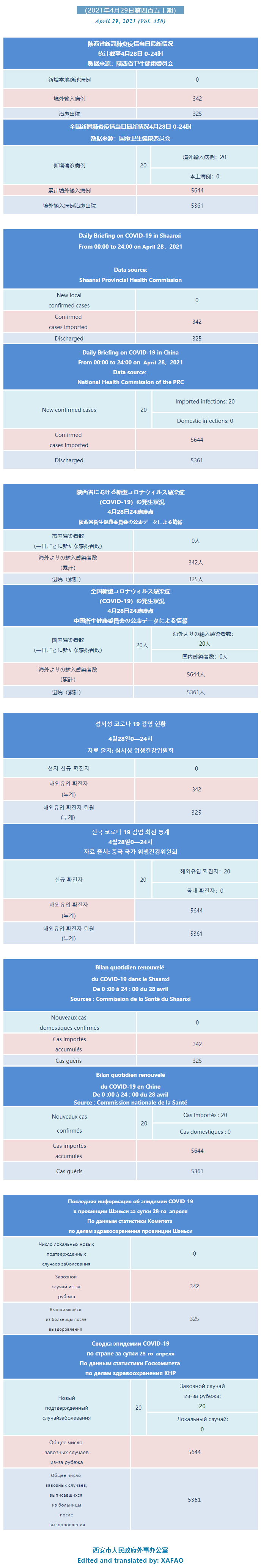 西安市外办向在西安的外国人通报每日疫情(第四百五十期)