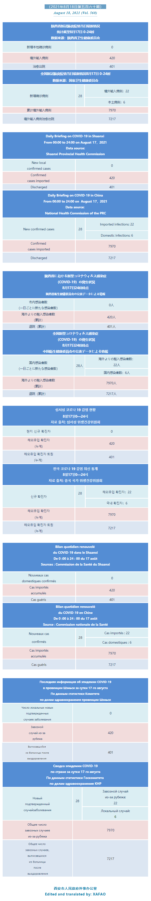 西安市外办向在西安的外国人通报每日疫情(第五百六十期)