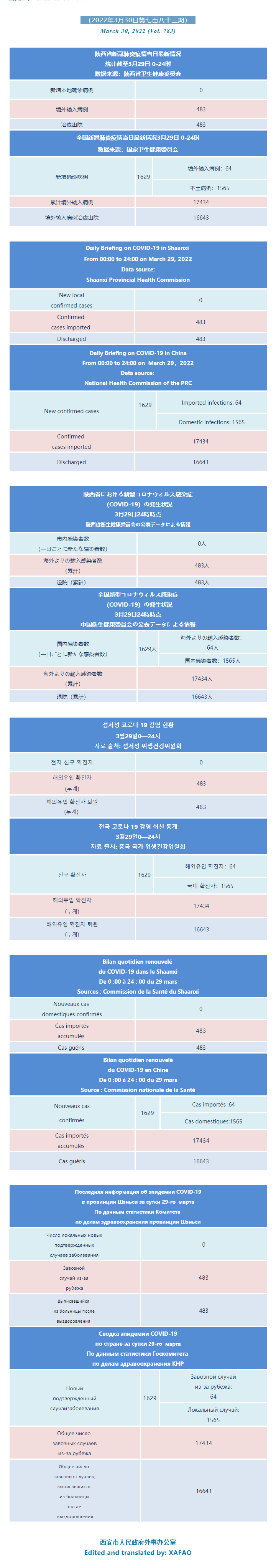 西安市外办向在西安的外国人通报每日疫情(第七百八十三期)